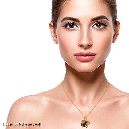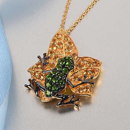 GP 2.27 Ct Diopside and Multi Gemstone Frog on Maple Leaf Cluster Pendant with Chain in Gold