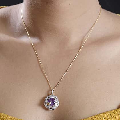 GP Italian Garden Collection - African Amethyst, and White Zircon Cluster Pendant with 18K Yellow Gold Vermeil Plated Sterling Silver 6.86 ct.