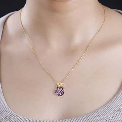 GP Italian Garden Collection - African Amethyst, White Zircon, Blue Sapphire, Black Spinel Pendant With Silver Chain (Size 20) in 18K Vermeil Yellow Gold Sterling Silver 2.860 Ct.