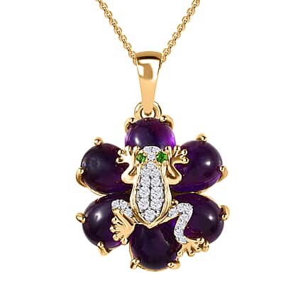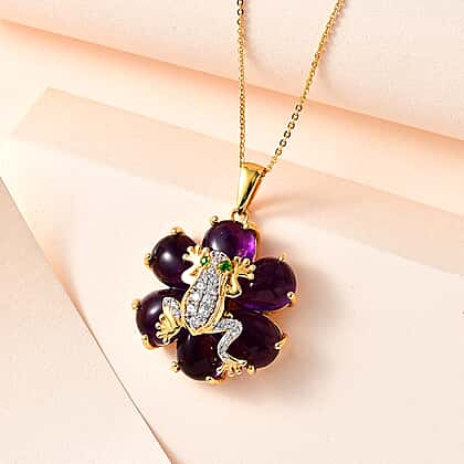 GP Italian Garden Collection - Amethyst, Natural Zircon, Natural Chrome Diopside & Multigemstone Pendant with Chain (Size 20) in 18K YG Vermeil Plated Sterling Silver 17.02 Ct, Silver Wt. 8.55 Gms