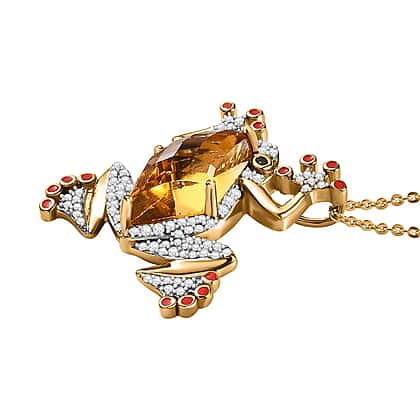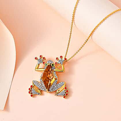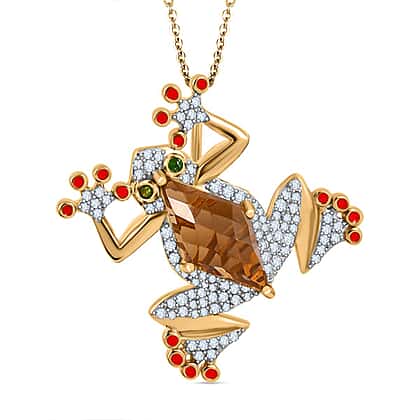 GP Italian Garden Collection - Citrine, Natural Zircon & Natural Chrome Diopside Frog Pendant with Chain (Size 20) in 18K YG Vermeil Plated Sterling Silver 5.38 Ct, Silver Wt 7.54 GM