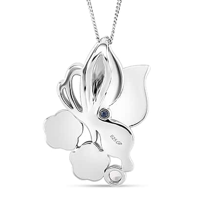 GP Italian Garden Collection - Green Jade, Pink Jade, White Zircon & Kanchanaburi Blue Sapphire Pendant with Chain (Size 18) in Rhodium Overlay Sterling Silver 7.54 Ct, Silver Wt. 7.20 Gms.