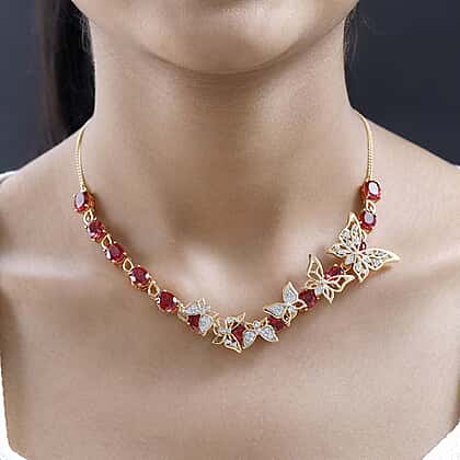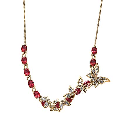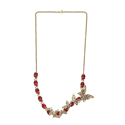 GP Italian Garden Collection - Lab Created Padparadscha Sapphire & Zircon Necklace (Size 18) in 18K Gold Vermeil Sterling Silver 36.81 Ct