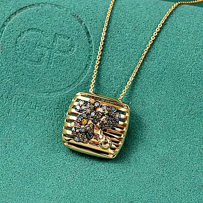 Experience the artistry with luxury with this multi coloured diamond pendant featuring kanchanaburi blue sapphire. This showcases the rare beauty of multi-coloured diamonds and the captivating hue of sapphires set in a flower design, creating a piece that steals the spotlight. Expertly curated in hypoallergenic 925 sterling silver with 18K vermeil yellow gold plating, this floral inspired pendant ensures lasting shine and comfort, even for sensitive skin. Make a bold statement with this refined craftsmanship and luxurious piece of jewellery.
