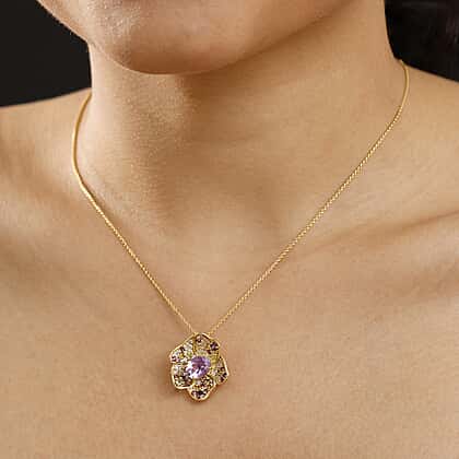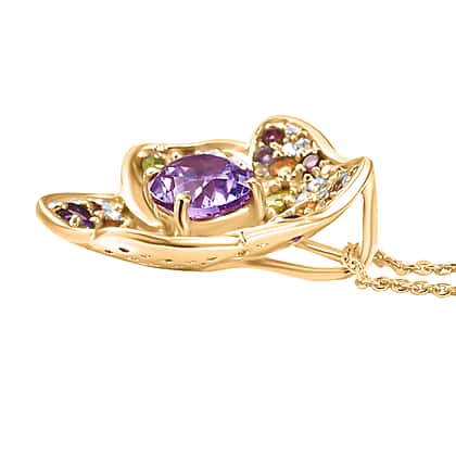 GP Italian Garden Collection - Pink Amethyst, Citrine & Multi Gemstone Pendant with Chain (Size 20) in 18K Vermeil Yellow Gold Plated Sterling Silver 3.22 Ct.