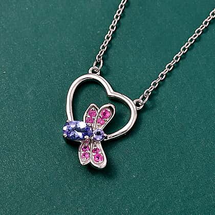 If this butterfly heart pendant adorned with colourful gemstones does not make your heart flutter, nothing ever will! This tanzanite, blue, and pink sapphire pendant from the GP collection features an array of juicy and joyful gems. It features a slender heart outline in rhodium overlay sterling silver frames, a butterfly motif made from a cluster of gemstones. At its centre, an oval tanzanite glows with violet-blue light, while round pink sapphires add a playful pop of colour along the wings. A tiny blue sapphire sits at the core, grounding the palette with a deeper tone and adding quiet contrast.The silhouette is soft and feminine, perfect for wearing close to the heart. This pendant can motivate the wearer to listen to their heart and emerge as a glowing butterfly. It comes with a lobster clasp closure that offers a secure wear.