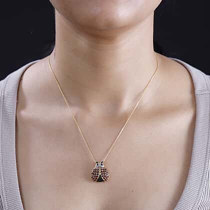 GP Collection - Orissa Rose Garnet, Lotus Garnet, Black Spinel, White Zircon Ladybug Pendant with Chain (Size 20) in 18K Yellow Gold Vermeil Sterling Silver