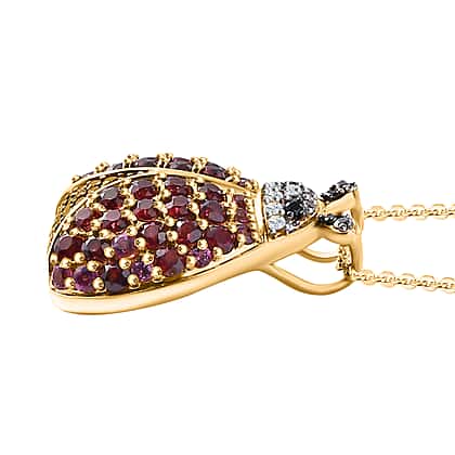 GP Italian Garden Collection Orissa Rose Garnet & Multi Gemstone Ladybug Pendant with Chain (Size 20) 18K Vermeil Yellow Gold Plated Sterling Silver 2.62 Ct.