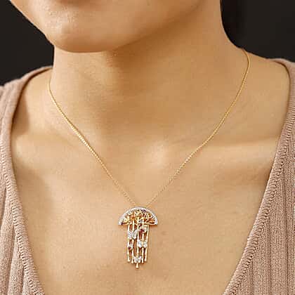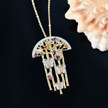 Inspired by the elegance of nature in bloom, this statement Rhodolite garnet and multi gemstone tree pendant from the GP Italian Garden Collection features butterflies dancing through bamboo vines, brought to life with sparkling rhodolite garnet and a medley of vibrant gemstones. Crafted in hypoallergenic 925 sterling silver with an 18K vermeil yellow gold overlay, it’s perfect for sensitive skin and won’t tarnish or turn green. The intricately sculpted design, accented with robust, scratch-resistant stones, glows with colour and charm. Suspended from a 20-inch chain, it’s a wearable expression of wonder and whimsy—ideal for gifting or treating yourself to something rare and breathtaking.