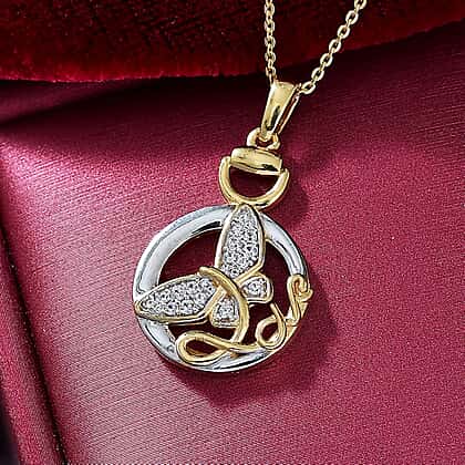 Embrace the elegance of nature with this enchanting white zircon butterfly pendant with chain from the GP Italian Garden Collection. A beautifully crafted butterfly motif, adorned with sparkling white zircons, symbolises transformation and grace. The delicate intertwining design, accentuated with 18K vermeil yellow gold plating, adds a luxurious touch, while the sterling silver base ensures durability and tarnish resistance. Designed for those who appreciate fine craftsmanship, this pendant comes with a size 20 chain, making it a timeless addition to any jewellery collection or a meaningful gift for someone special.