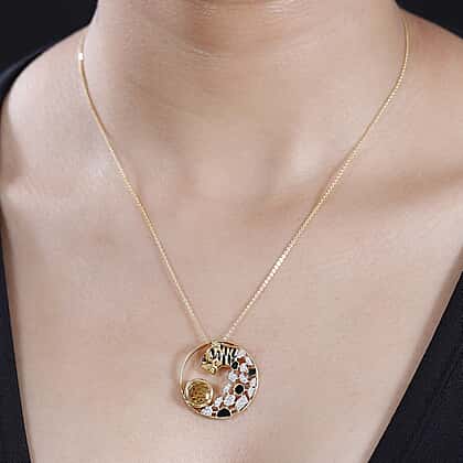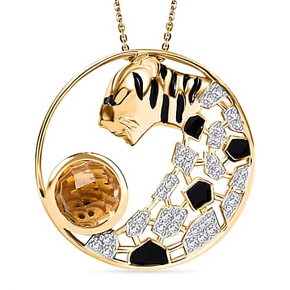 GP Tiger Totem Collection - Citrine and Black Spinel Tiger Pendant with Chain (Size 20) in 18K Yellow Gold Vermeil Plated Sterling Silver
