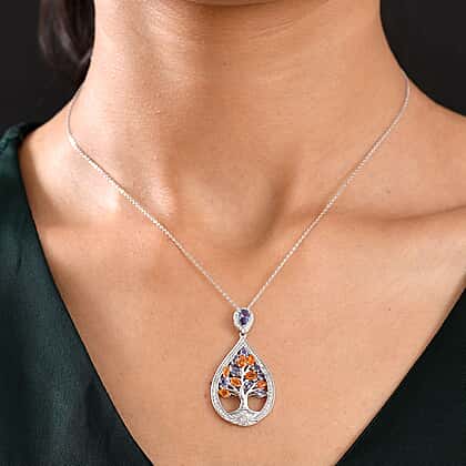 There’s something deeply meaningful about this iolite, white zircon and fire opal tree pendant by the GP Tree of Life Collection. Its teardrop frame cradles a silver tree, branching with violet iolite and fiery orange opal leaves—symbols of growth, balance and energy. Each gemstone tells its own story: iolite for clarity, fire opal for passion, and white zircon for purity and sparkle. Set in rhodium-plated 925 sterling silver that’s hypoallergenic, tarnish-resistant and gentle on sensitive skin, this pendant with 20-inc chain is both symbolic and striking—a piece that feels personal and full of light.