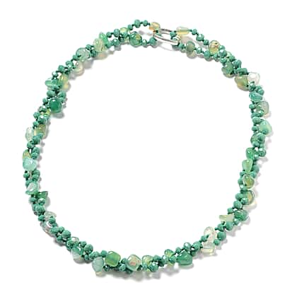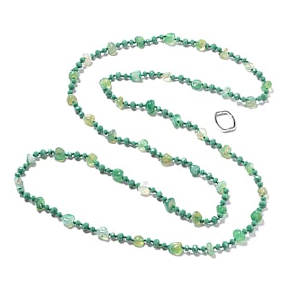 Green Agate and Simulated Emerald Beaded Necklace 60 Inch