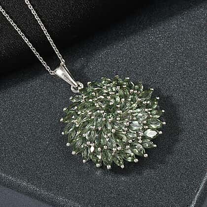 Green Apatite Pendant with Chain (Size 20) in Rhodium Overlay Sterling Silver 6.41 Ct, Silver Wt. 6.66 Gms.