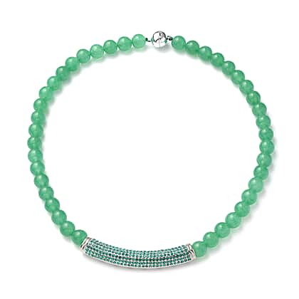Green Aventurine and Neon Green Austrian Crystal Beads Necklace (Size - 20) with Magnetic Lock