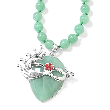253.60 Ct Green Aventurine and and Red Austrian Crystal Venetian Mask Beaded Necklace 18 with 2 inch Extender