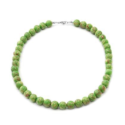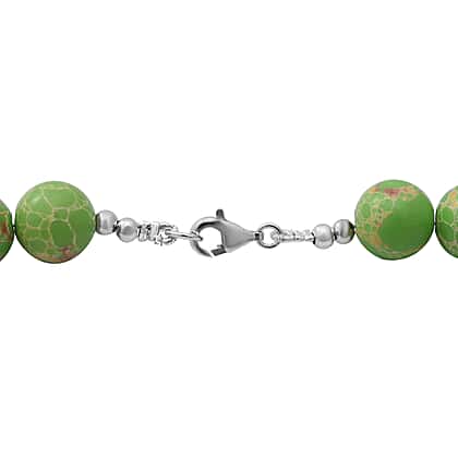 Green Imperial Jasper Beads Necklace (Size 18) in Sterling Silver 250.00 Ct.