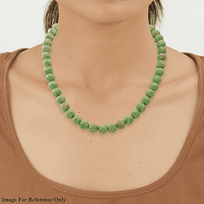 250 Ct. Green Jasper Beaded Necklace in Sterling Silver 18 Inch