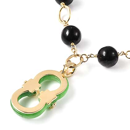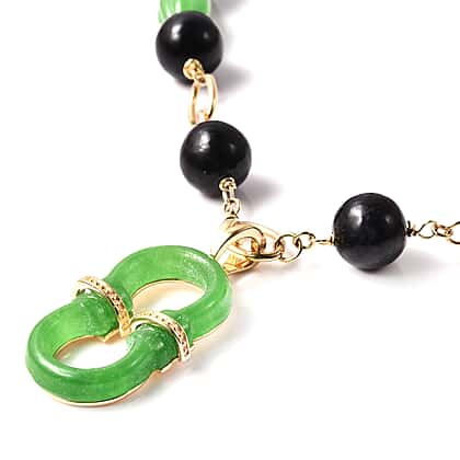 - The Green and black jade form a stunning piece of combination around this matinee necklace.