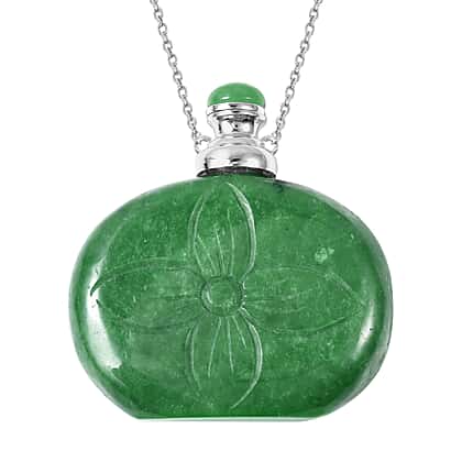 Green Jade Carved Perfume Bottle Necklace (Size 21) 478.00 Ct.