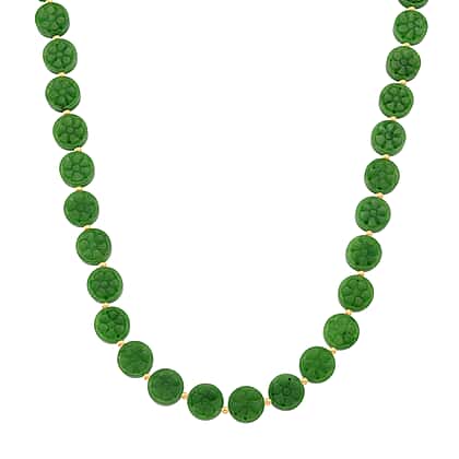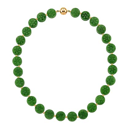 Green Jade Necklace (Size - 20) with Magnetic Clasp in Yellow Gold Plated Sterling Silver 352.00 Ct.