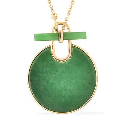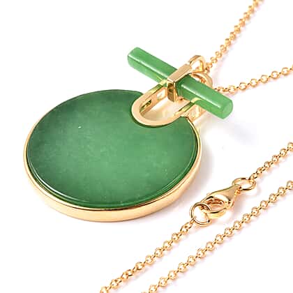 28 Ct. Green Jade Necklace in Yellow Gold Overlay Sterling Silver 18 Inches