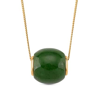 Green Jade Pendant with Chain (Size 18) in 18K Vermeil Yellow Gold Plated Sterling Silver 27.11 Ct.