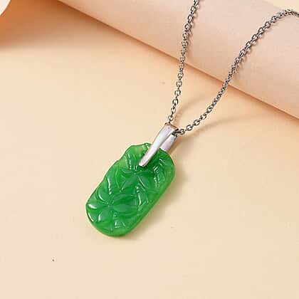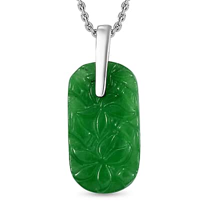 This Green Jade Floral Carved Pendant draws both its colour and design from nature. An ode to nature’s beauty, the pendant features a carving-cut fancy Green Jade carrying a floral pattern carved into its surface. The glossy jade is held by a silver bail that allows it to be strung into the accompanying Size 20 chain. Platinum Overlay adds a lustrous shine to the silver pendant and chain.