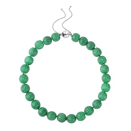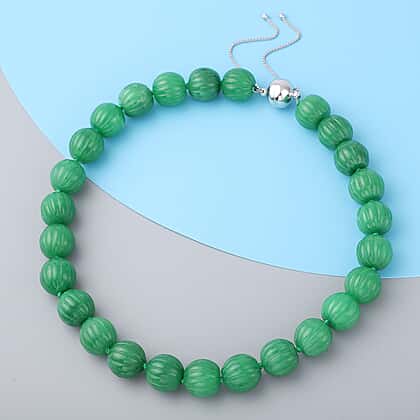 Be it an evening gown or a flowy date dress, this green jade necklace will complement each look. It is made of carved jade beads of 921 Carat that lend an artisanal finish. The Size 18 necklace can be extended up to 3 inches to reach a length that suits you. It has a magnetic lock that is carved in 5 grams of sterling silver with a rhodium overlay.