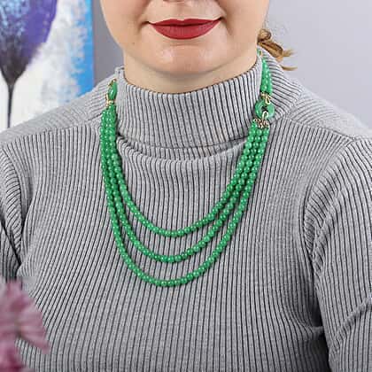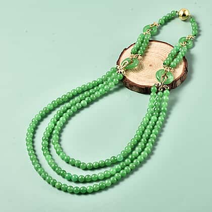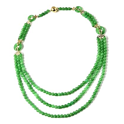 Green Jade Three Layer Beads Necklace (Size - 20) with Magnetic Lock in Yellow Gold Overlay Sterling Silver 367.91 Ct, Silver wt 5.00 Gms