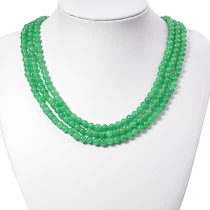 436 CT. Green Jade Three Strand Bead Necklace in Sterling Silver 18 Inches
