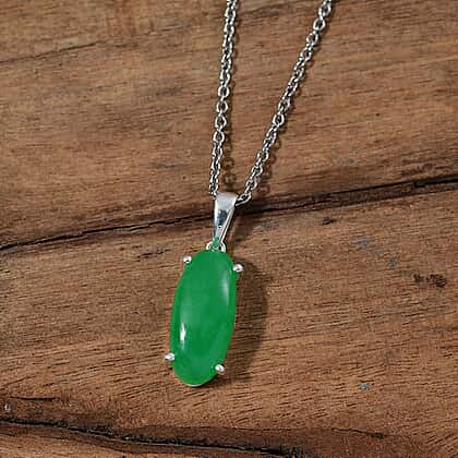 Green Jadeite Sterling Silver Pendant with Chain (Size 20) 6.700 Ct.