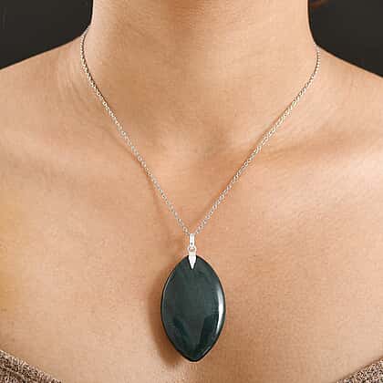 Green Jasper Pendant with Chain (Size 20) Mix Metal 100.000 Ct.