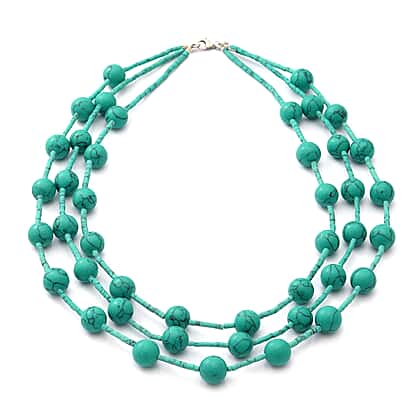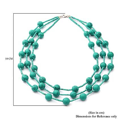 Green Turquoise and Green Howlite Beads Necklace Size - 20 in Rhodium Plated Sterling Silver