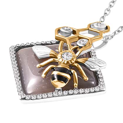 Grey Agate, White Crystal Honeybee Necklace (Size - 24+3 EXT) in Dual Tone 30.01 Ct.