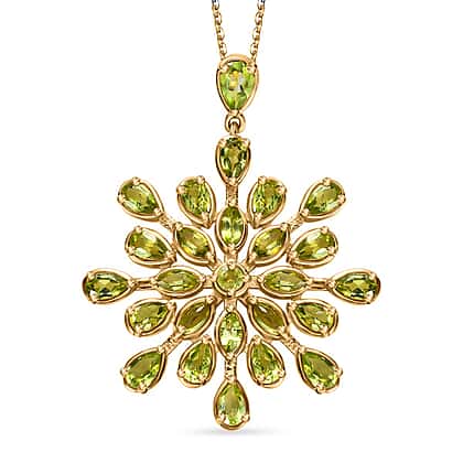 Hebei Peridot Floral Pendant with Chain in 18K Vermeil Yellow Gold Plated Sterling Silver 5.74 Ct, Silver Wt 8.79 GM