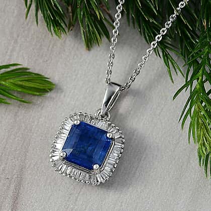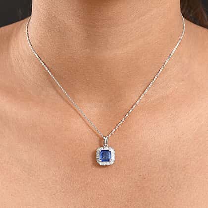 Heir to the Kashmir Sapphire - Nilamani & White Diamond Pendant with Chain (Size 20) in Rhodium Overlay Sterling 3.07 Ct.