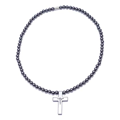 Hematite Beads Cross Charm Necklace (Size 26) with Magnetic Lock 645.50 Ct.