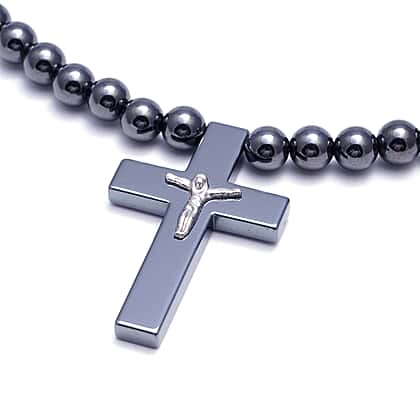 - NECKLACE DESIGN: Glimmering 7-9mm cabochon cut beads of Hematite form the design of the necklace while a plain cut cross pendant is also designed with a smooth and flawless finish from Hematite, altogether weighing 645.5 carats of weight