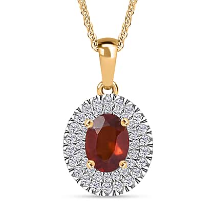 Hessonite Garnet, White Zircon Pendant with Torn Chain 19DC (Size 20) in 18K YG Plating Sterling Silver 0.84 ct 2.450 Ct.