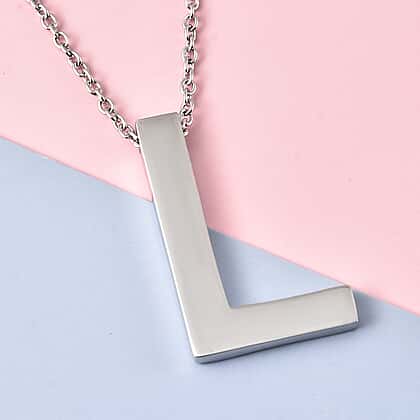 L-INITIAL Pendant with 20-inch Chain with Lobster Clasp in Silver Tone