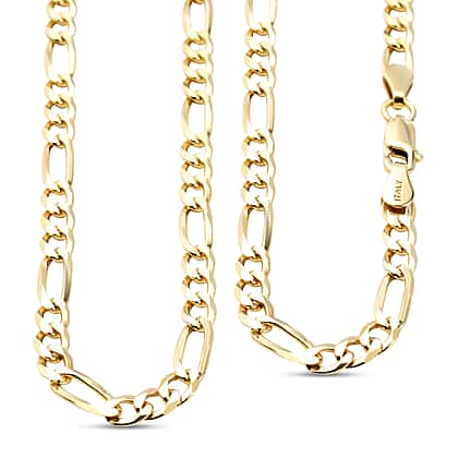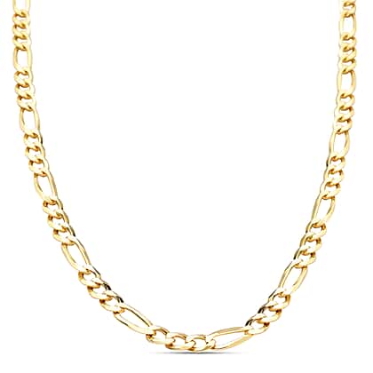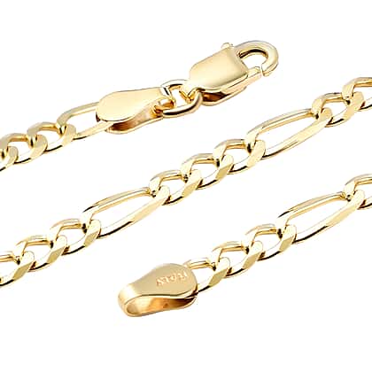 The Italian-made Figaro necklace is a perfect choice for your collection. Similar to cable link design, this Figaro chain features an elongated oval link paired with three circular links, giving this chain a bold and appealing look. The yellow gold plating over sterling silver gives a shine that is hard to pass over. Made with 9.75 grams of metal, this chain is ideal for those occasions where you want to leave a strong impression of your personality. Get this matinee 24-inch necklace for the bold persona you or your close ones exhibit.
