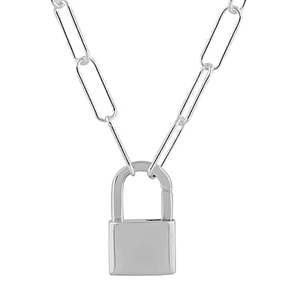 Italian Made - Sterling Silver Link Necklace (Size 26) with Lock Pendant