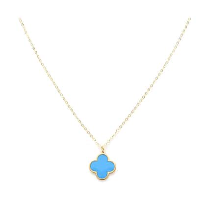 Vicenza Collection Italian Made Turquoise Clover Necklace Size 18 in 9K Yellow Gold