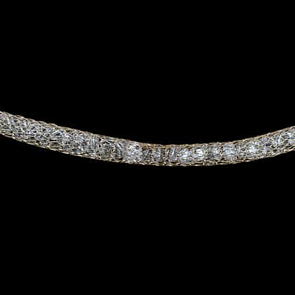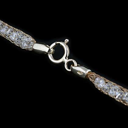 Italian Made 9K Yellow Gold Cubic Zirconia Tuscan Crochet Necklace (Size 18) with Spring Ring Clasp