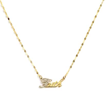 Italian Made 9K Yellow Gold Diamond Dust Faith Necklace in Size 18