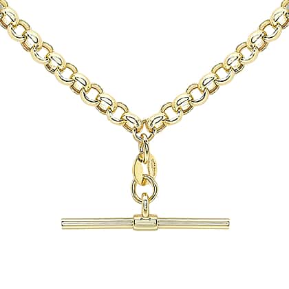 This 9K Yellow Gold Belcher Albert Necklace is a timeless piece of jewellery. The necklace is designed with a classic belcher chain that measures 18 inches in length, making it the ideal size for layering or wearing alone. It is crafted with yellow gold giving it a regal and luxurious feel. The necklace is secured with a fancy T-bar clasp that accents the overall design. This piece is perfect for those who love classic jewellery.