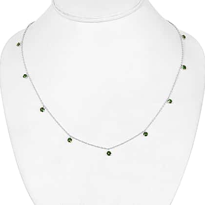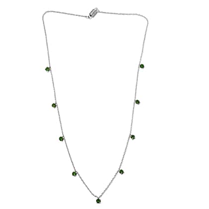 J Francis - Fern Green Crystal (Rnd) Charm Station Necklace (Size 20) in Platinum Plated