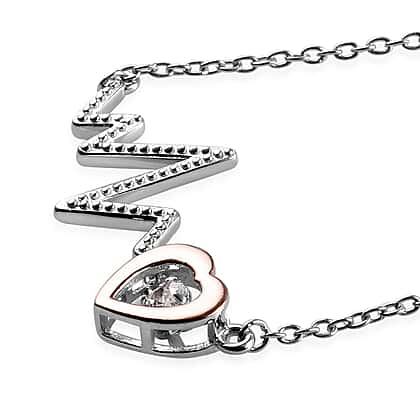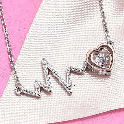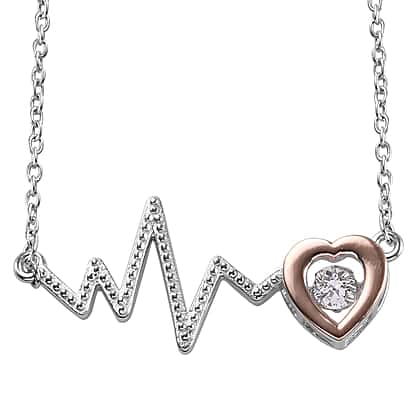 Lustro Stella Finest CZ Heartbeat Necklace in Rose Gold and Platinum Plated Silver Size 18 Inch