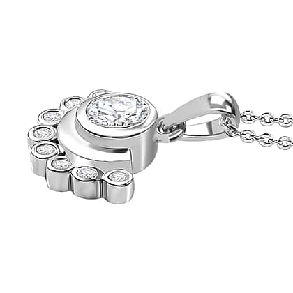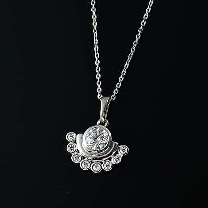 J Francis - SWAROVSKI ZIRCONIA Art Deco Pendant with Chain (Size 20) in Rhodium Plated Sterling Silver 0.96 ct.